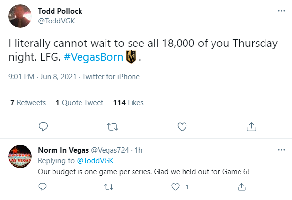 And a message from the Golden Knights’ ticket chief: