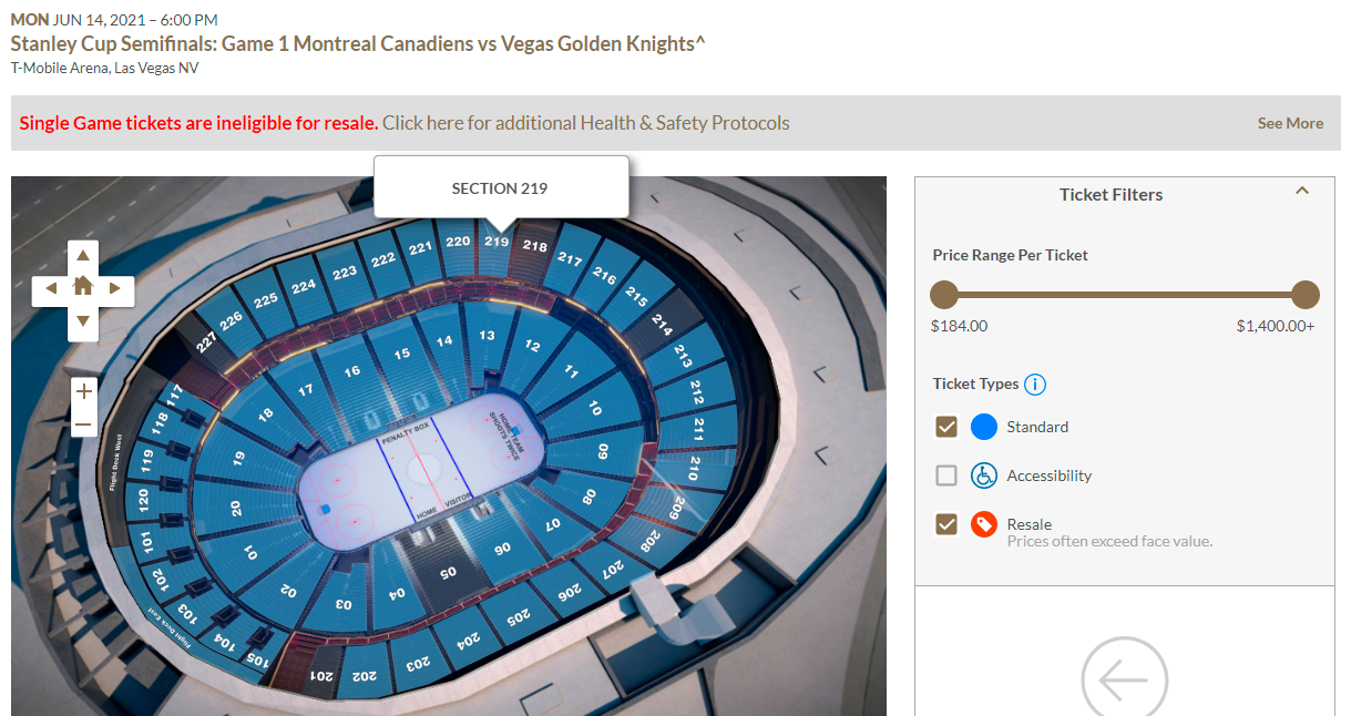 As of 10 AM today, there were tickets available on the VGK Ticket Exchange website, the team’s official ticket seat. Tickets began at $184,