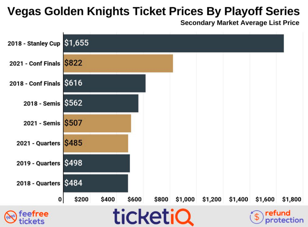 Check out the VGK secondary market ticket prices through the years of the four-year-old NHL franchise from TicketIQ .