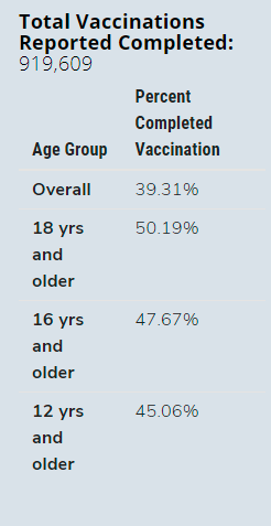 As of Monday, less than 40 percent of the overall age groups are completely vaccinated in the health district: