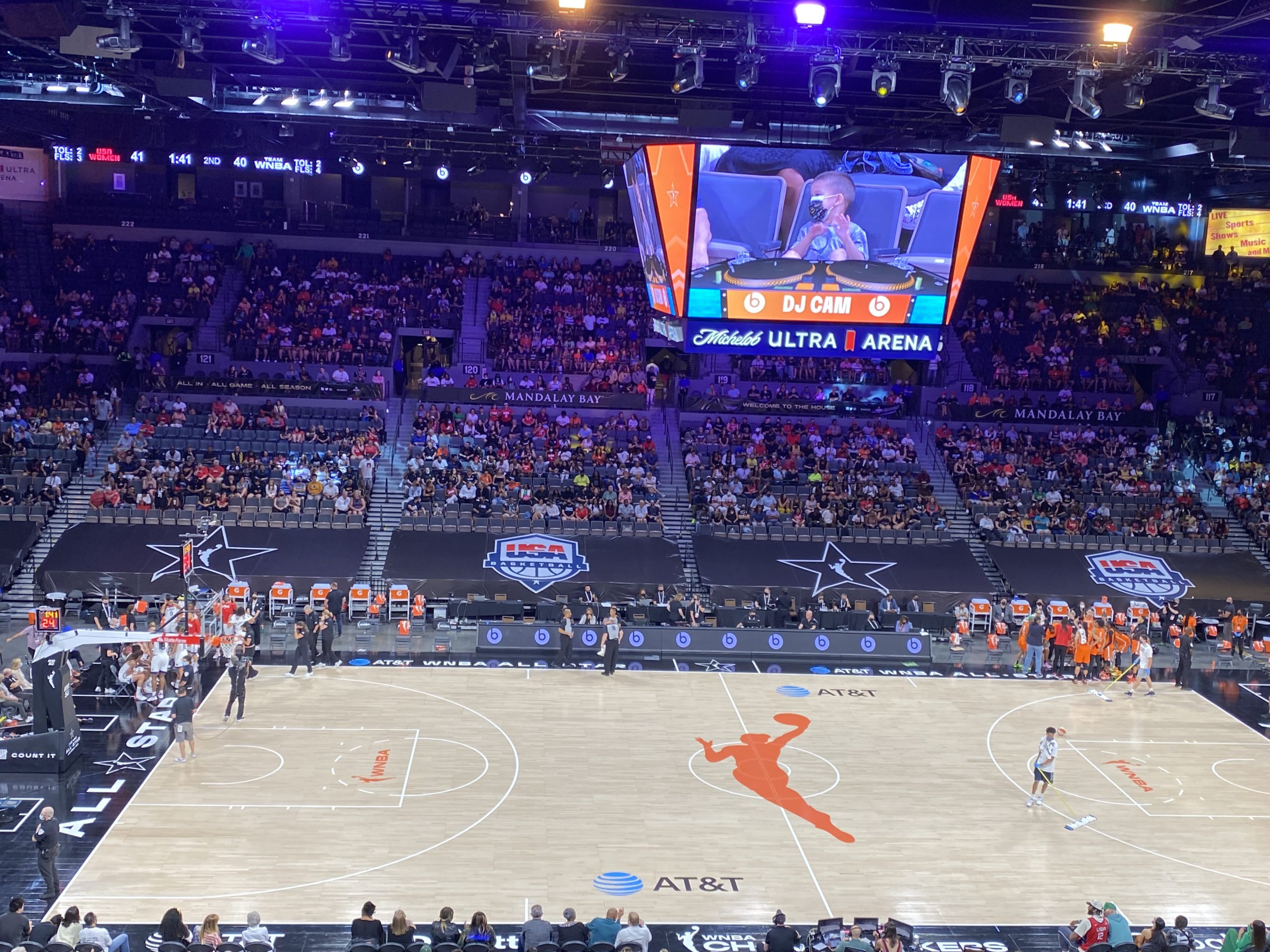 The WNBA was center stage Wednesday evening at Mandalay Bay’s Michelob Ultra Arena, where the WNBA All-Stars played Team USA in an Olympic tune-up for the women’s national team bound for Tokyo. The WNBA’s stars bested the Olympians, 93-85, with an announced crowd of 5,175. It marked the first time this season that fans other than season ticket holders were allowed in the Las Vegas Aces’ home arena.