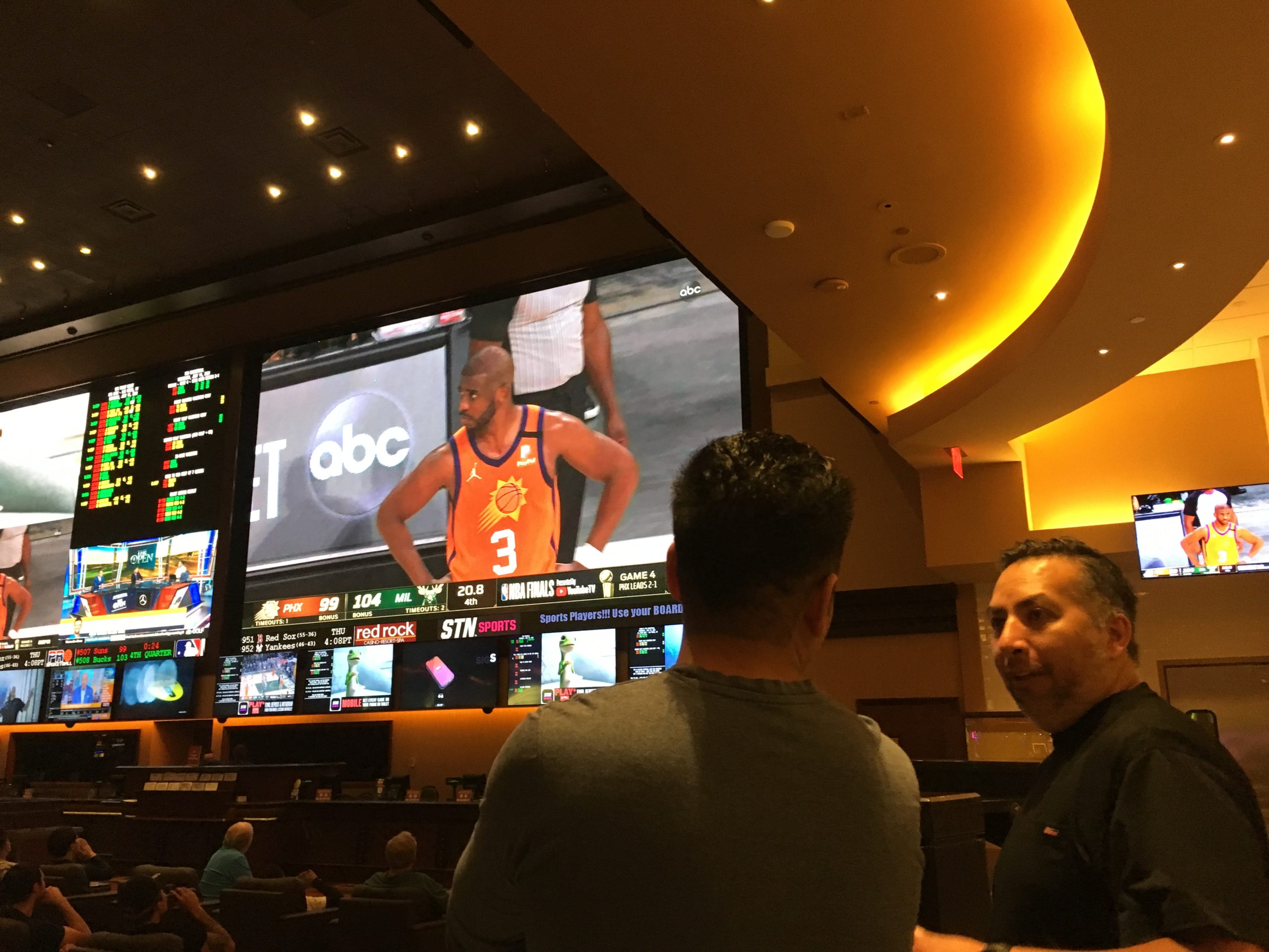 Basketball was even the top draw at the Red Rock sports book, where fans watched the Phoenix Suns lose Game 4 of the NBA Finals to the Milwaukee Bucks, with the Best-of-7 finals now tied, 2-2.