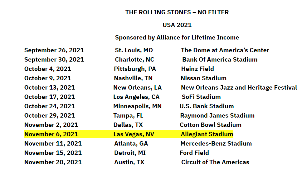 Rolling Stones Scheduled for Allegiant Stadium on Nov. 6