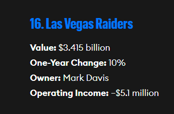 The instability in the Raiders business front office is strange because the team generated hundreds of millions of dollars in new revenue thanks to the new stadium and now rank 16th out of 32 NFL teams in team value, according to Forbes, which released its NFL team value rankings Thursday,
