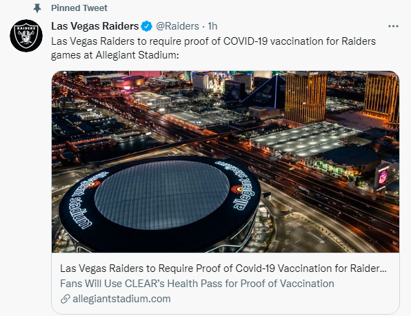 It shouldn’t be a surprise that the Raiders are requiring fans to be immunized in order to attend a home game.