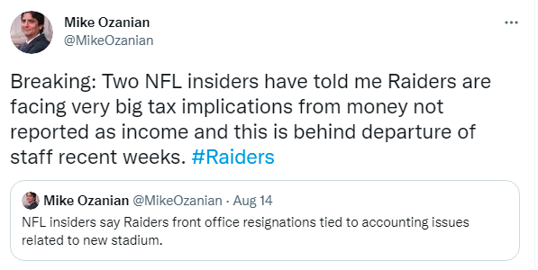 Media Reports Say Raiders Financial Executives Left Team After Discovery Of ‘Financial Irregularities’