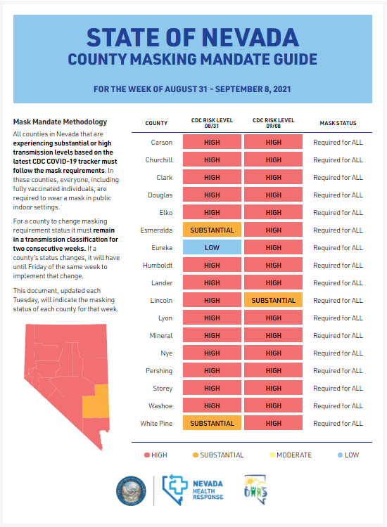 The Vegas Golden Knights, which start preseason play Sept. 26 with a game against the San Jose Sharks, are not requiring vaccination proof of home game fans. The current county protocol is that all people in indoor places are required to mask up.
