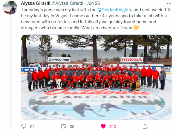 Alyssa Girardi, VGK senior manager of communications and content, also left in June.