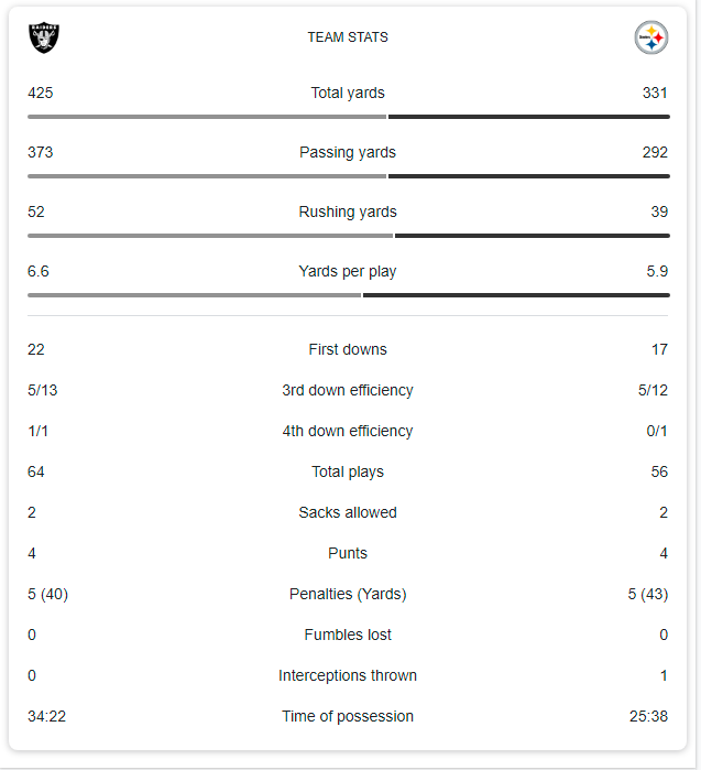 And the Las Vegas Raiders, which yielded so many points and so many yards a year ago, have an overhauled defense and sport a 2-0 record after disposing of the Pittsburgh Steelers with a 26-17 win in the Steel City Sunday.