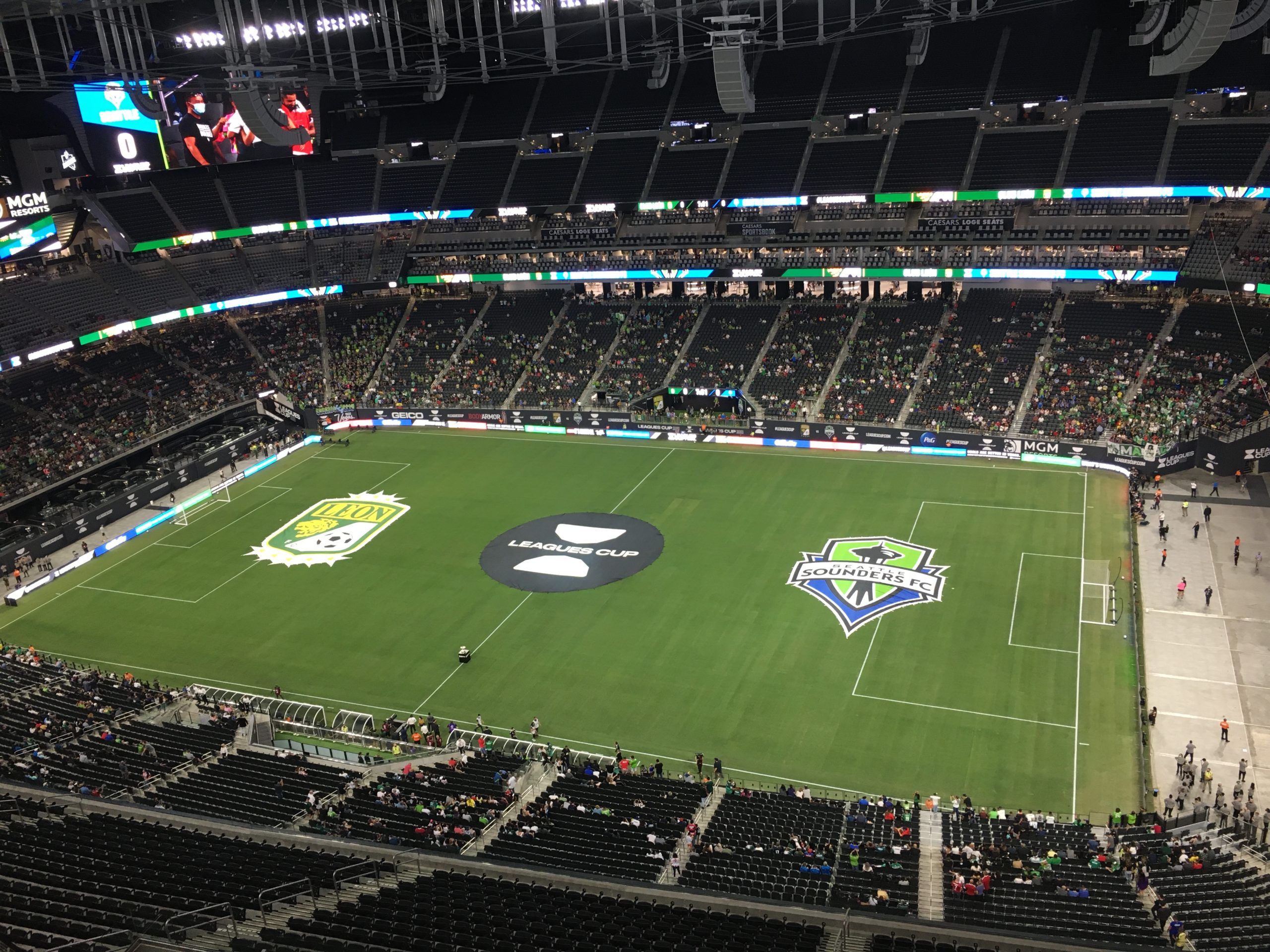 The Seattle Sounders were here at Allegiant Stadium, the NFL Raiders’ palatial domed stadium where the Sounders played Club Leon of Liga MX in a match that is called the Leagues Cup Final. After a sluggish and scoreless first half, things livened up in the second half and Leon rattled off three straight goals in the way to a 3-2 win before an announced attendance of 24,824.