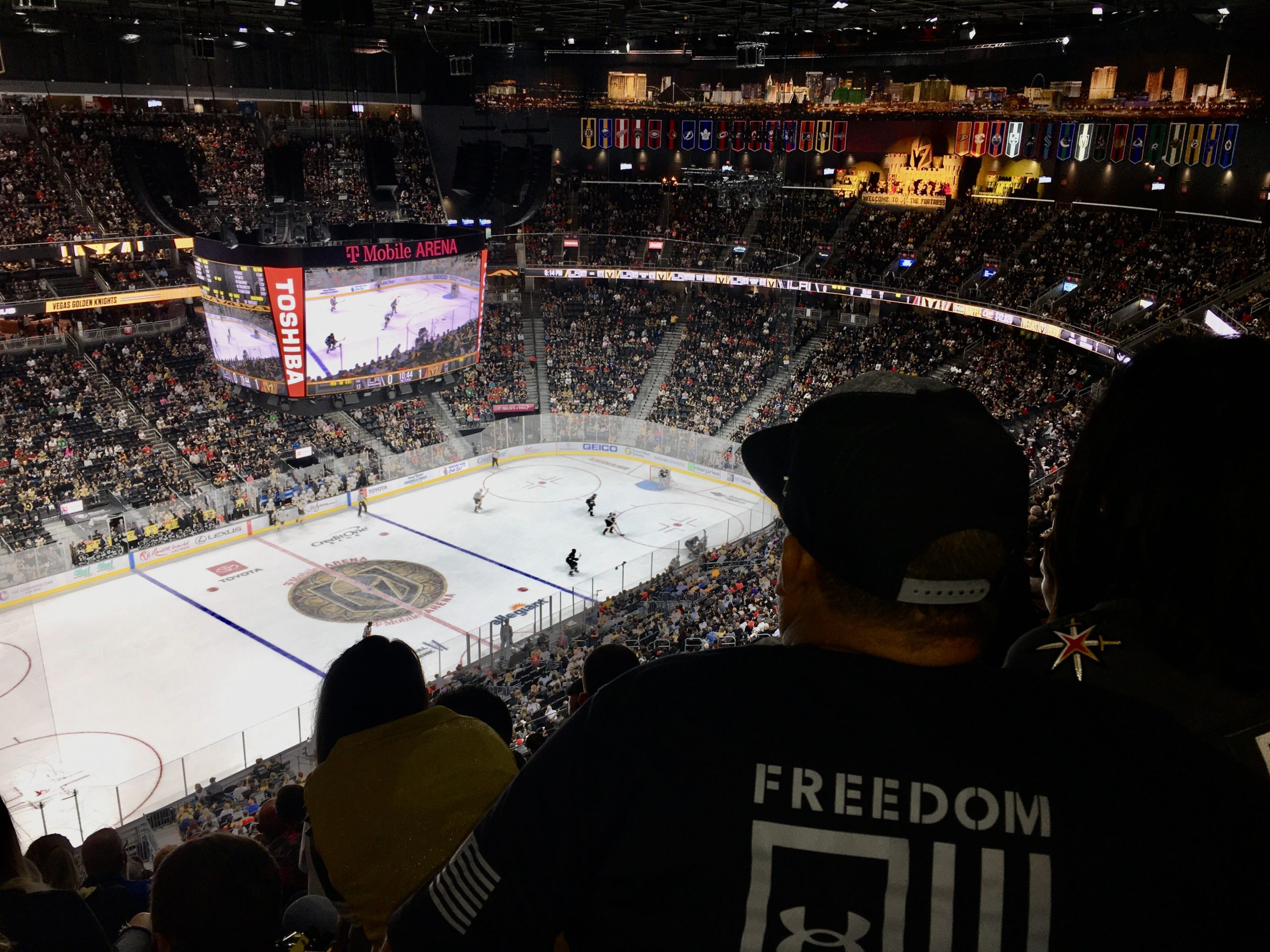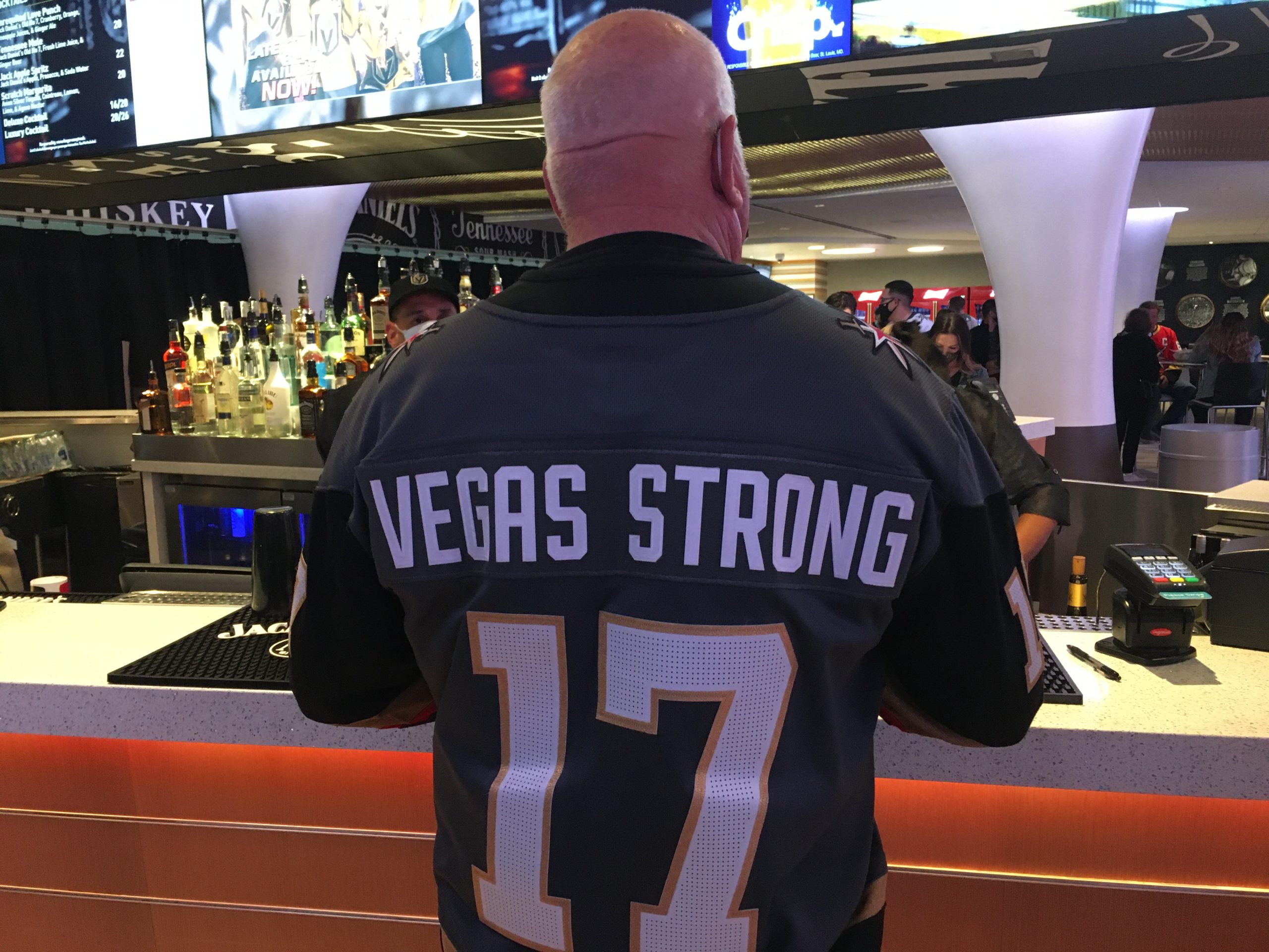 Layered atop the emotional day in Las Vegas is the daily COVID-19 pandemic, which has claimed the lives of 700,000 Americans. At the Golden Knights game at T-Mobile Arena, the protocol requires all fans to wear masks to comply with the state/county indoor mask requirement. A mile and a half away to the south, the Raiders require fans attending home games at Allegiant Stadium to show proof of COVID vaccination. After showing vax proof, fans inside Allegiant Stadium do not have to wear masks at Raiders home games.