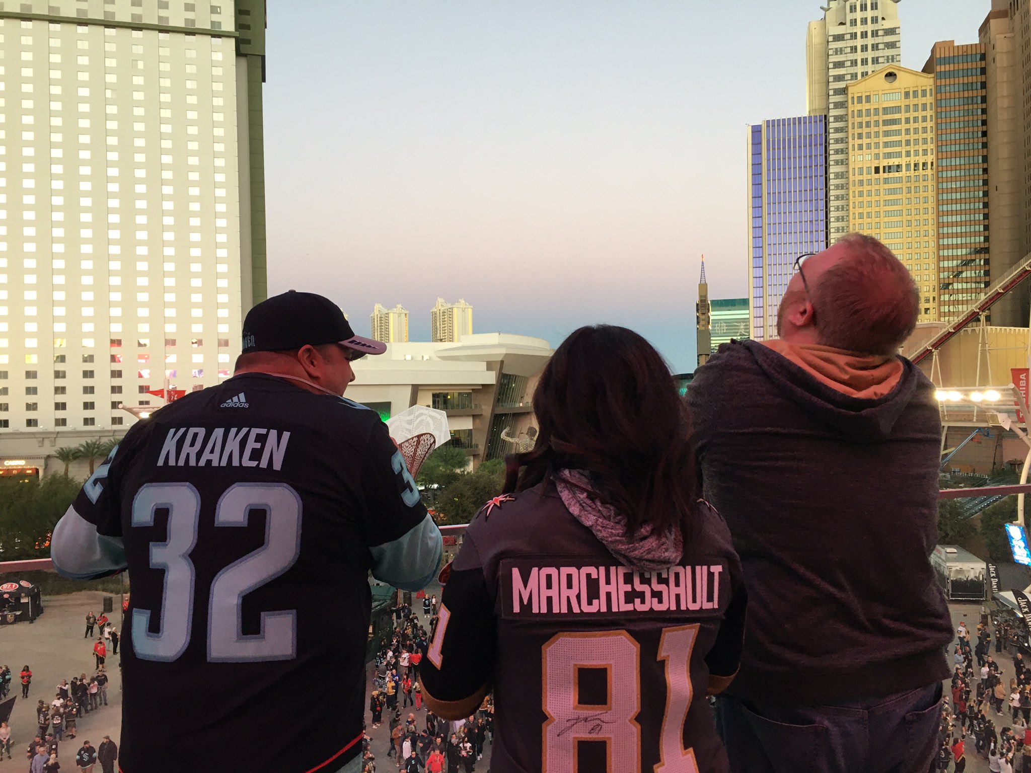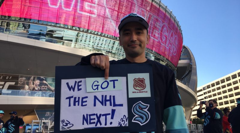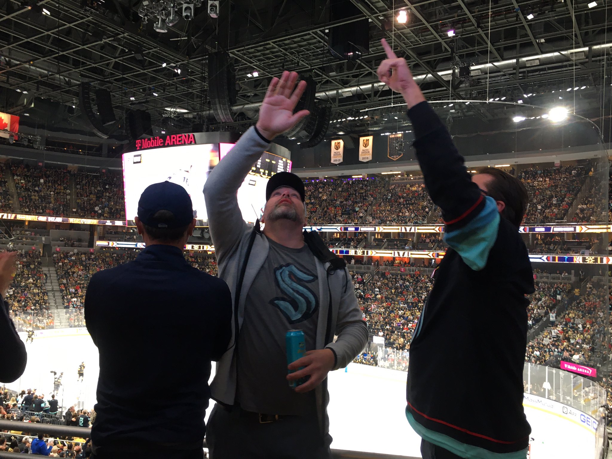 “It’s a dream come true,” Seattle Kraken fan Paul Buxton said before the game. He noted four years ago he attended the Knights’ first ever home game Oct. 10, 2017 and held a sign looking forward to an NHL team in Seattle. Tonight, he sat in section 20 thanks to a $380 ticket and soaked up the Kraken’s first regular season game four years later.