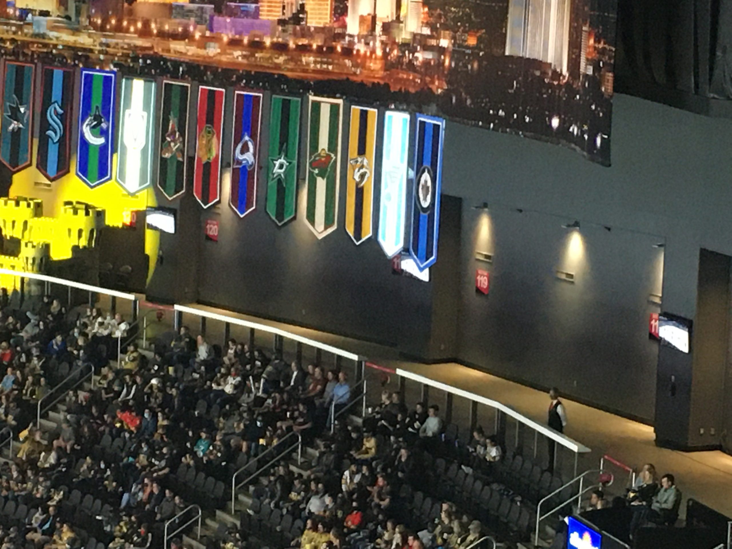 Announced attendance was 17,690 — which might sound impressive when fixed-seating capacity is 17,367. But with the Knights’ success on the ice during the first four seasons and a high bar for attendance numbers and arena capacity percentage, 17,690 is actually the lowest attendance since December 2017. Typically, this T-Mobile Arena area has standing room only fans. Last night, a sole usher stood there.