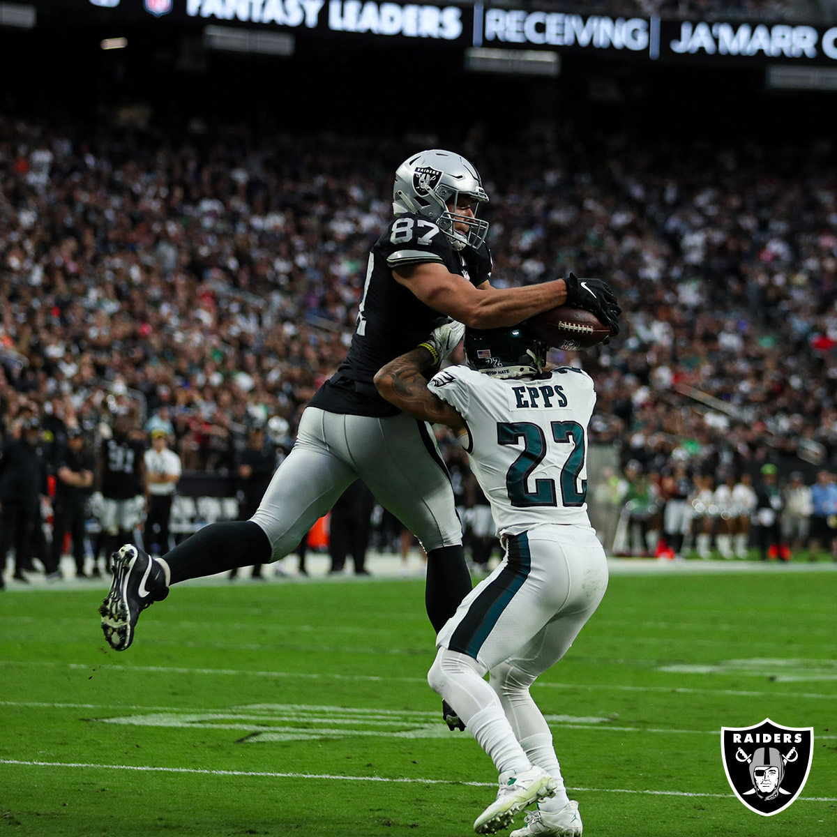 In fact, the Raiders tied the Eagles early in the second quarter with a Carr-to-Moreau TD pass.