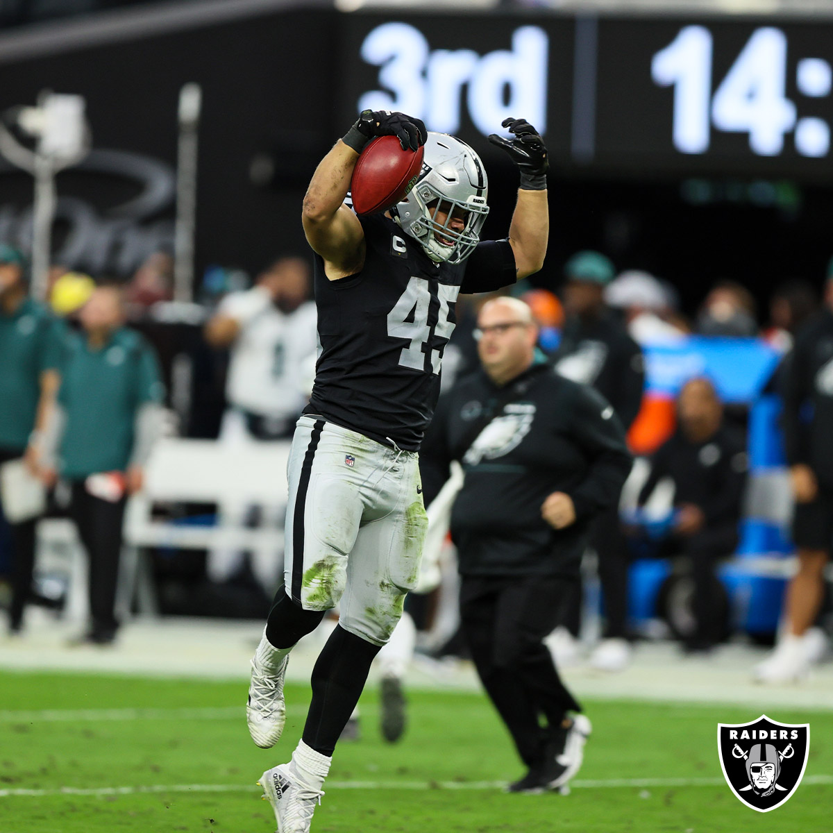 Then the Raiders recovered an Eagles fumble on the next possession and converted it into a short Daniel Carlson field goal.