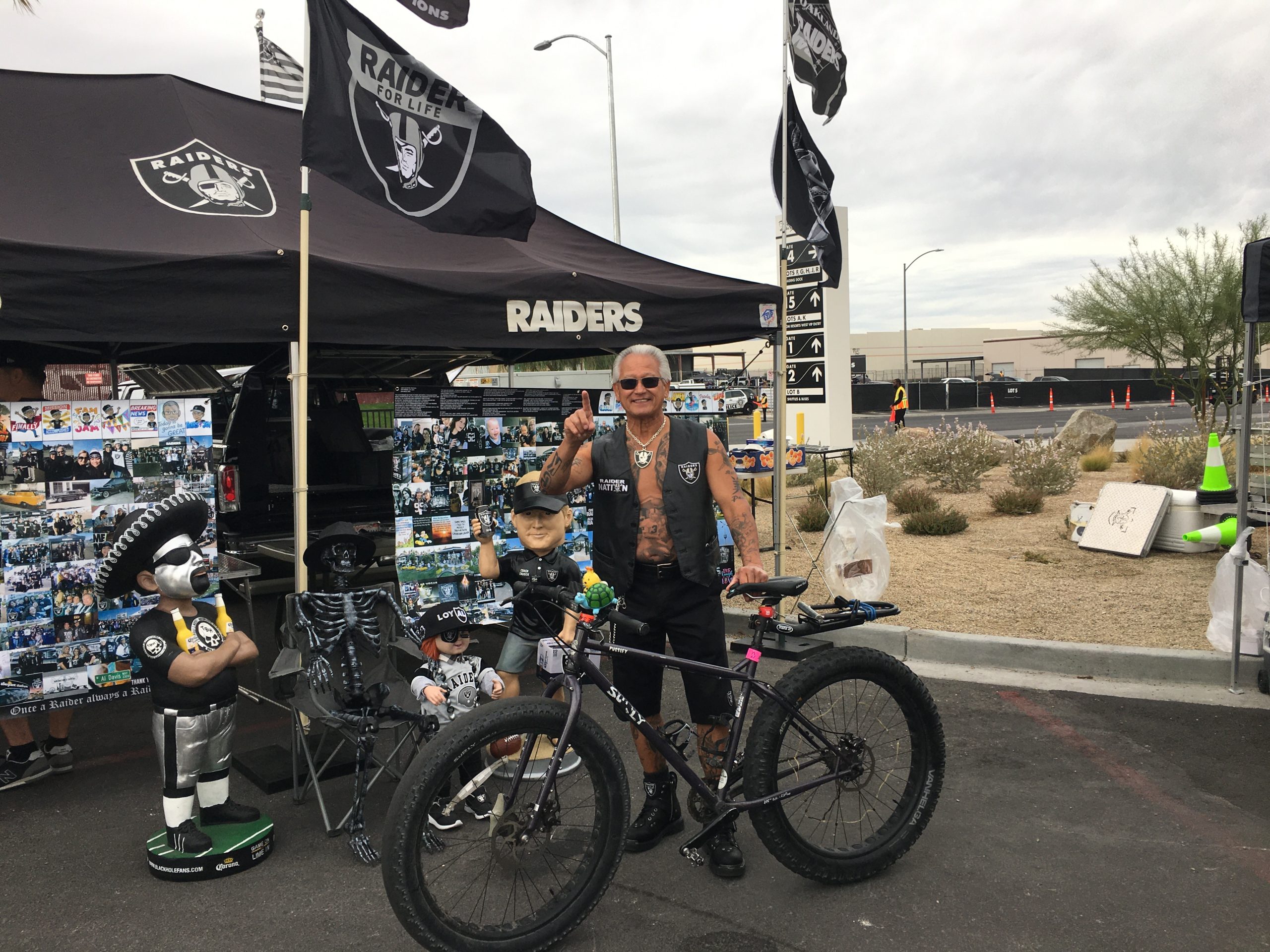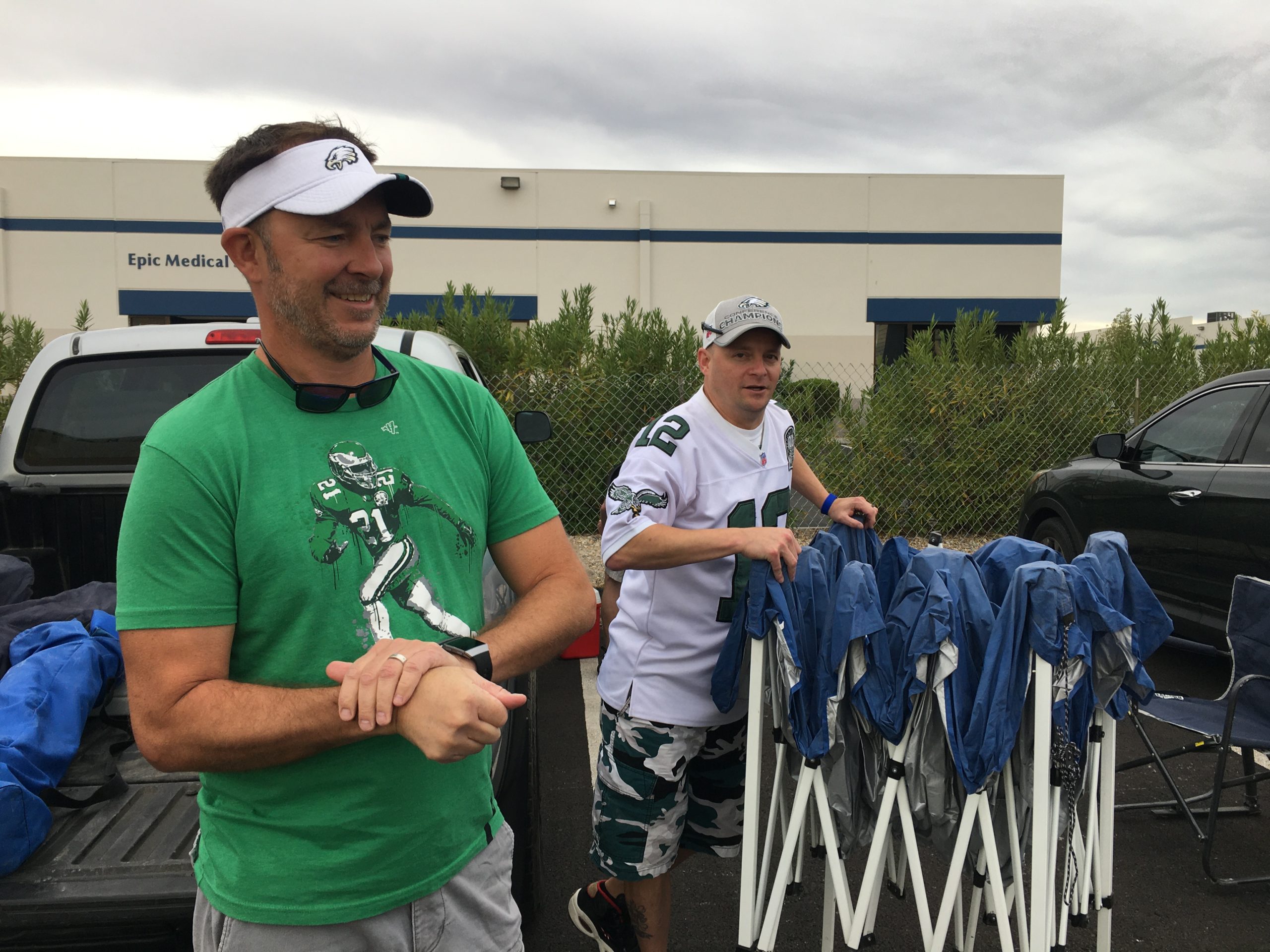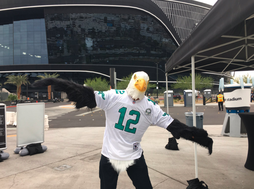 I spoke with a Raiders fans from Stockton, California while his son was getting his vaccination shot inside the Alternate Screening tent. His name was Sean and he lamented all the Eagles fans in the Raiders stadium, wondering if the Raiders will not have the home field advantage they had at their old Oakland stadium.