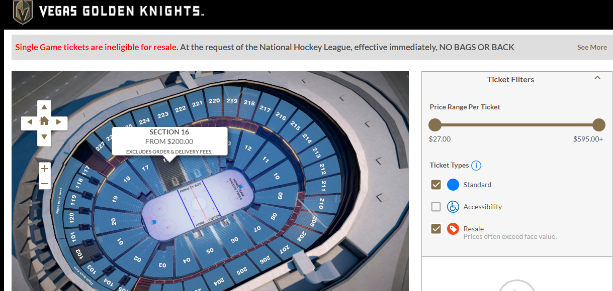 About 45 minutes before puck drop, the cheapest VGK ticket on the team’s site is $27.