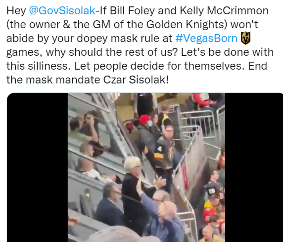 The Knights do not require proof of vaccination for fans to attend home games. Fans do need to mask up to comply with state/local indoor mask requirement. But many blow off the mask.