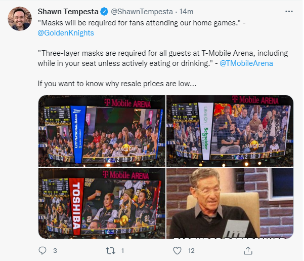Tonight’s non-complying mask fan goes to the bunch of fans in this tweet: