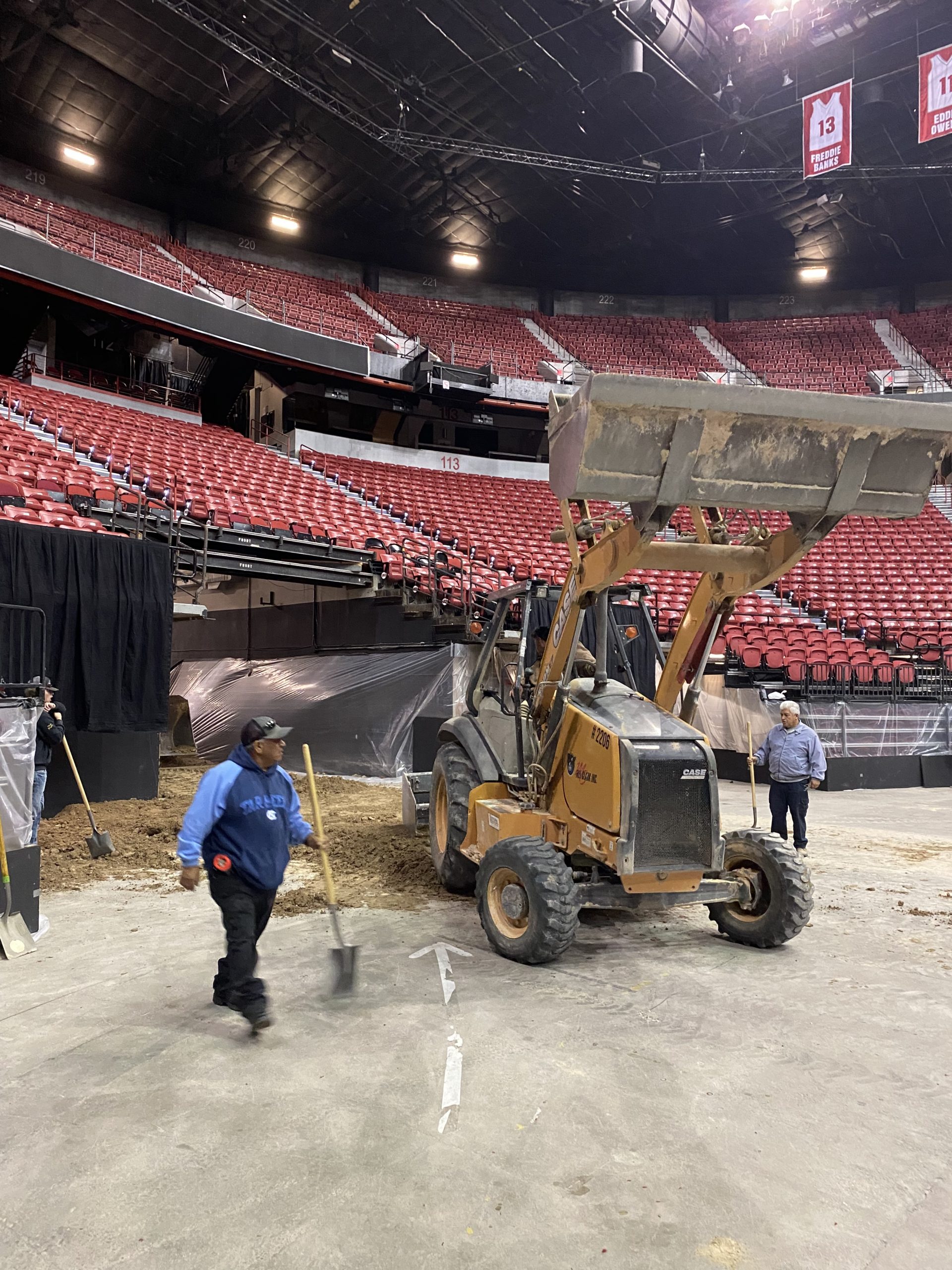As soon as Saturday’s UCLA vs UNLV basketball game ended at about 4 PM, the arena conversion crew at Thomas & Mack Center sprung into action like bucking horses to transform the all-purpose venue into one where the dirt will fly and the horses will gallop.