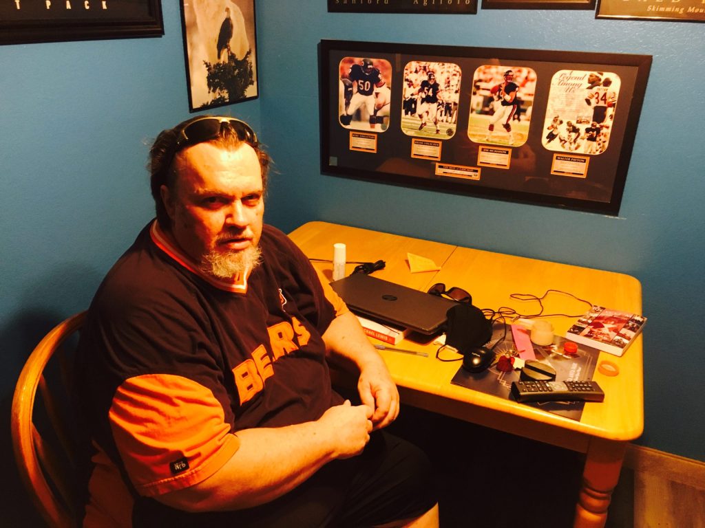 Harnish lived the life of a sports-loving bachelor in his condo near the Town Square shopping center in the west valley. When I visited Harnish in July 2020, his condo was adorned in Chicago Bears memorabilia, with plastic bottles of Gatorade, Coca-Cola and water covering his kitchen table.