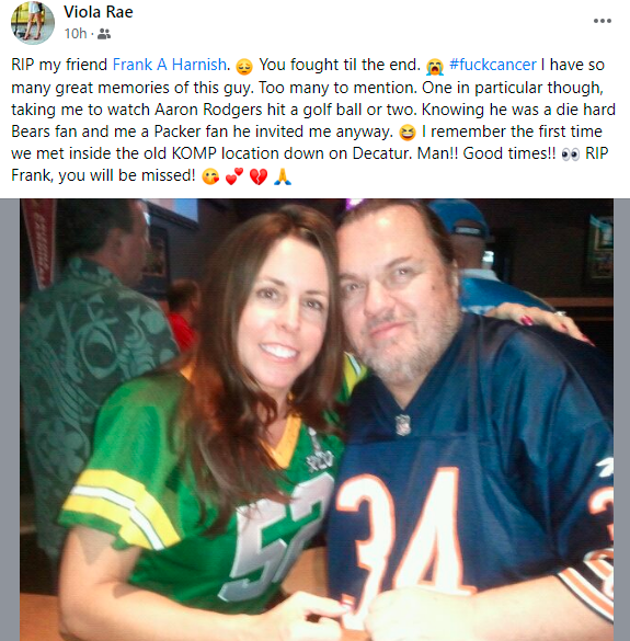 Chris Winn: This is tough. Frank was one of the first people I was fortunate to meet when I started doing radio here in town and couldn’t have been more up my alley. Like me, he was a sports nut & native Midwest guy. We immediately hit it off. Over the past decade plus we’ve had memorable times and as most of you know in recent years he’s faced both physical & professional obstacles & battled through them admirably. It’s beyond an understatement to say he will be missed. YOU, will not be forgotten brother. Rest easy my friend. RIP Ballpark Frank.”