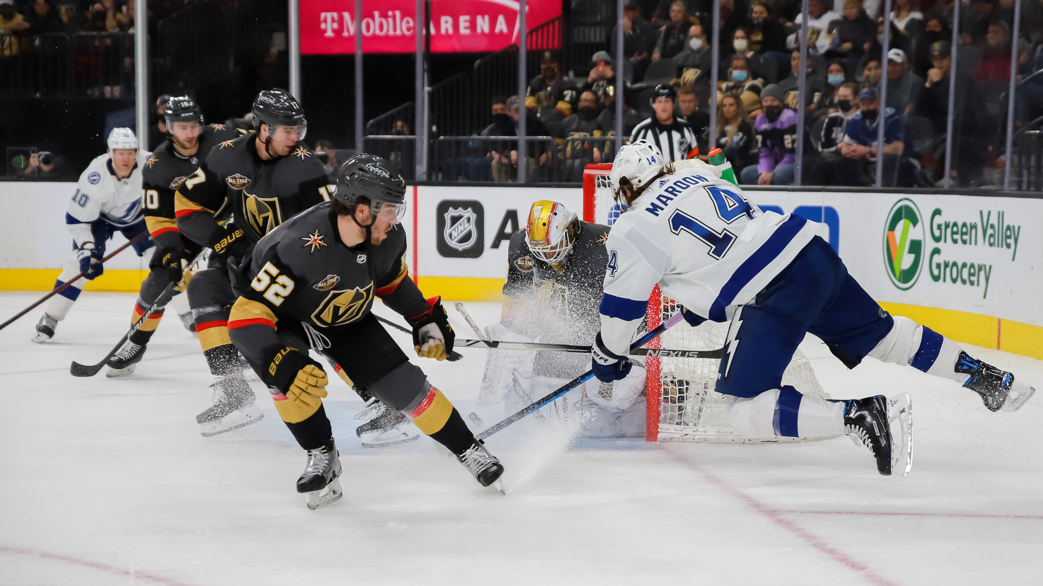 But with more NHL players moving into the COVID-19 protocol and more than 40 NHL games postponed because of COVID problems with teams, T-Mobile Arena PA announcer Bruce Cusick and arena emcee Mark Shunock implored fans here for the two-time Stanley Cup champion Tampa Bay Lightning vs Vegas Golden Knights game to mask up Tuesday evening.