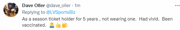 “I wish it didn’t have to be said. Wouldn’t it be nice if everyone worked together? As a STH I had to make the hard choice to not go tonight because I had no faith that my fellow attendees would show me the respect of covering their faces so that I don’t die. Awesome,” a Knights fan wrote on Twitter.