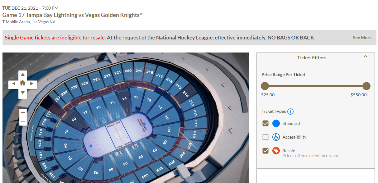 Tickets for tonight’s game were still available on the Golden Knights Ticket Exchange for as low as $25.