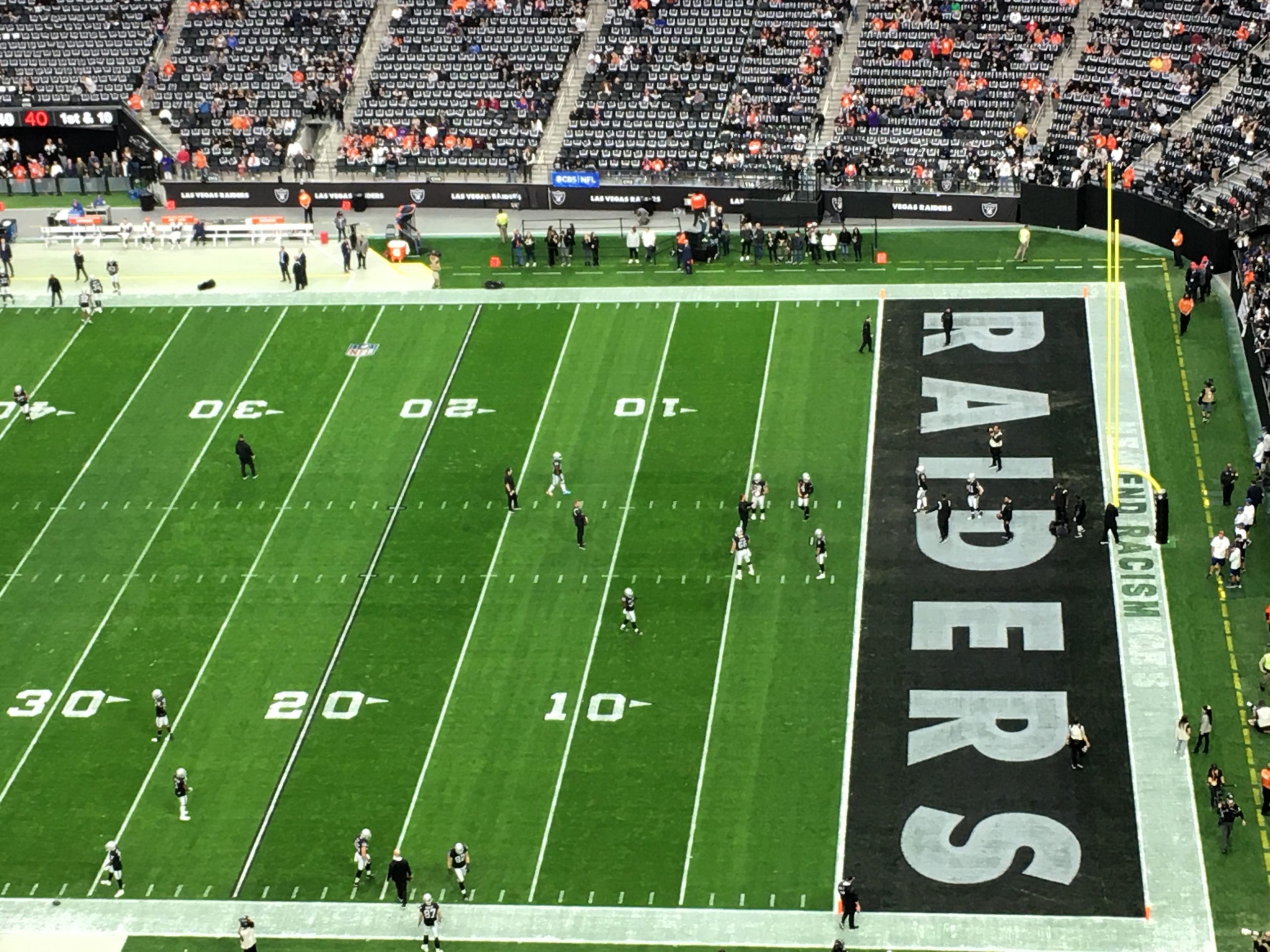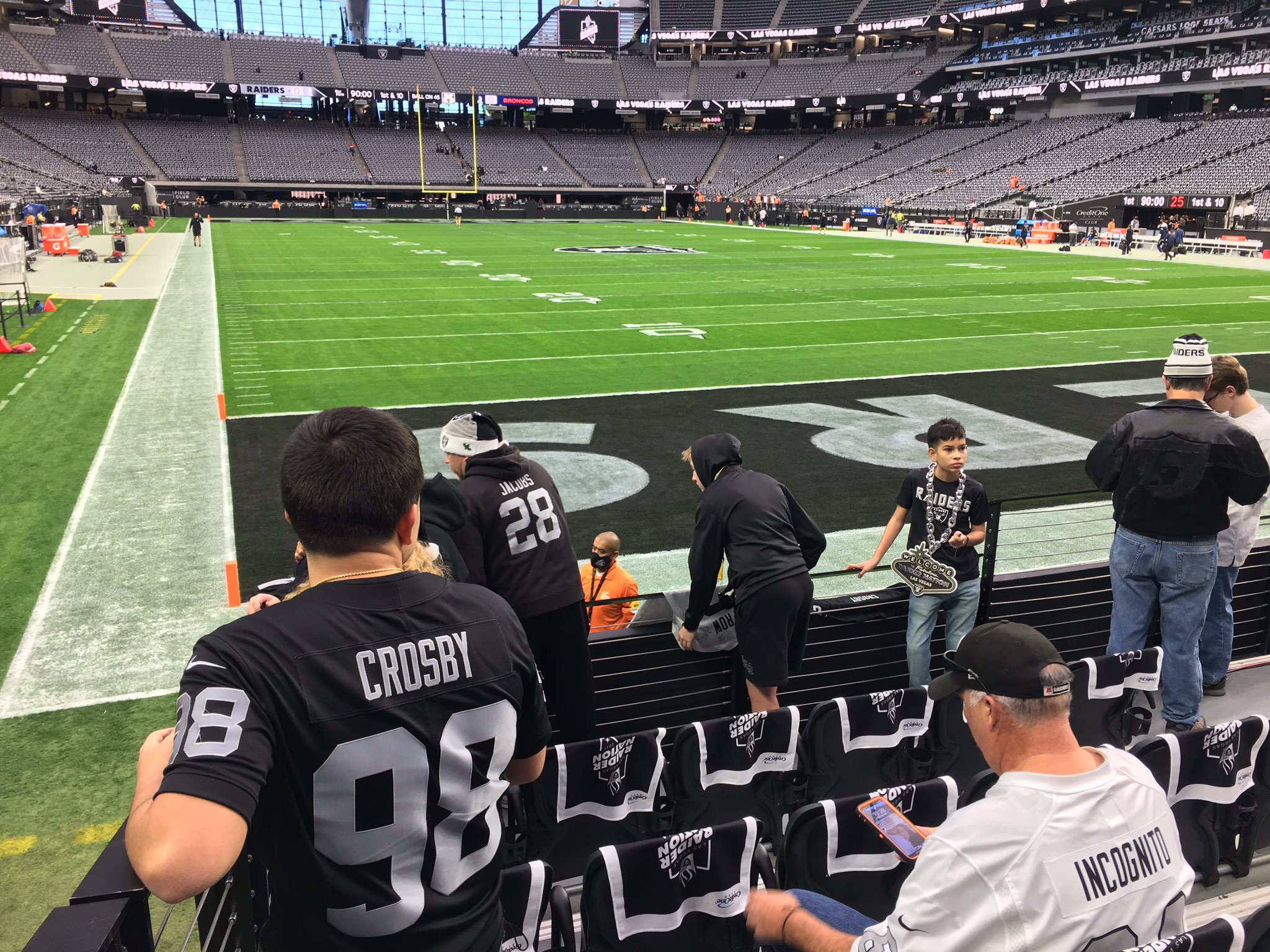 With 90 minutes to go before kickoff, there’s already a strong Broncos fan presence inside the building with lots of orange-clad fans in Allegiant Stadium.