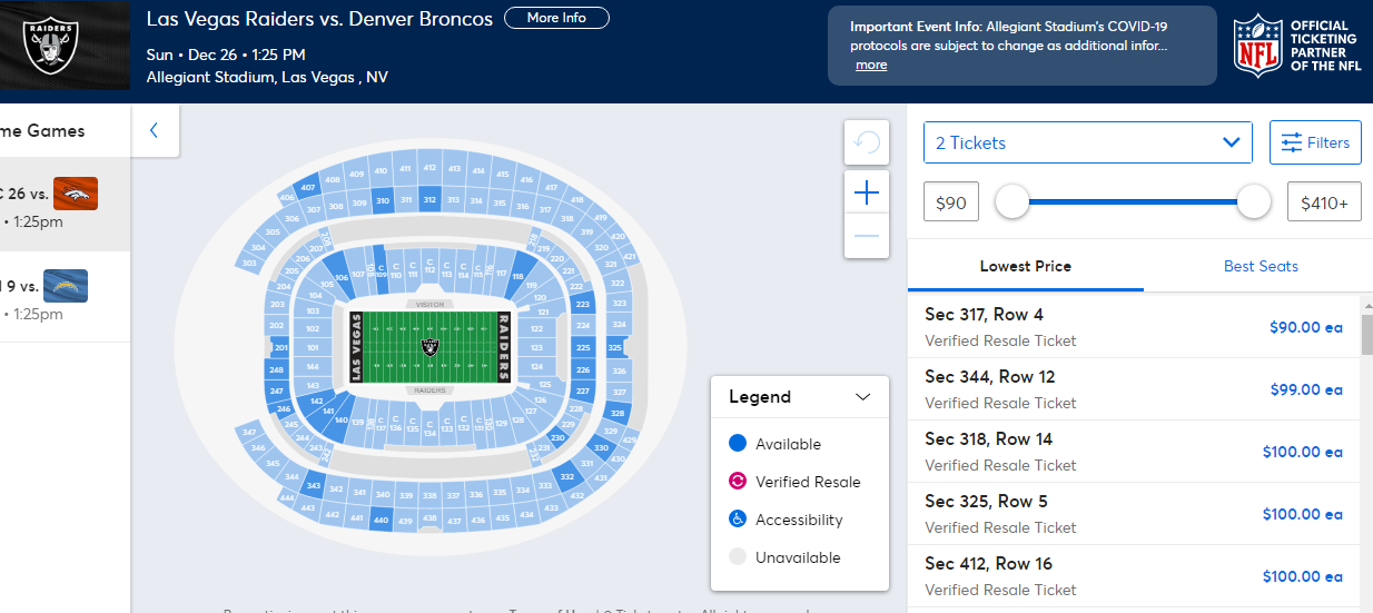 How much is a Raiders vs Broncos ticket worth?