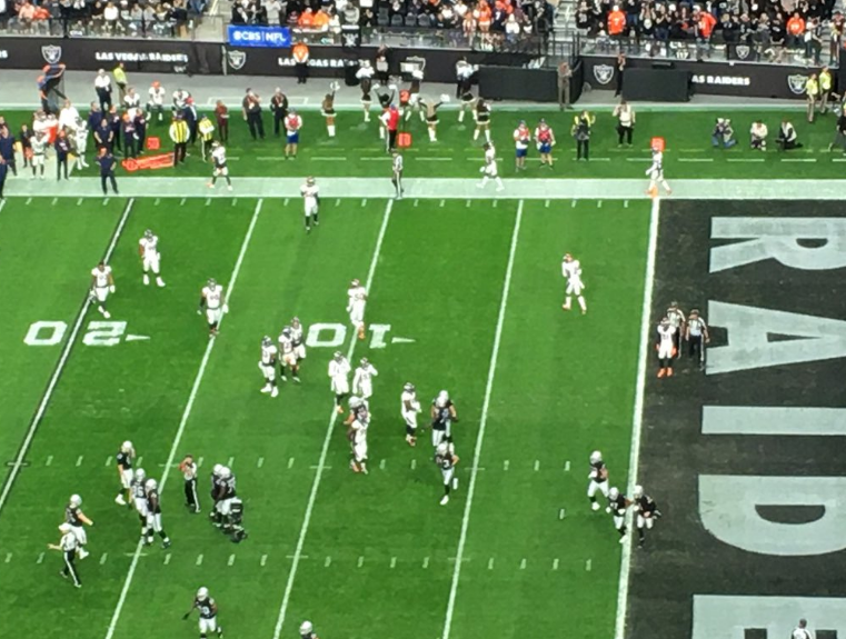 The Raiders responded to the Carr interception late in the first half with a touchdown drive thanks to nice runs by under-performing Josh Jacobs and a TD run/vault by backup running back Peyton Barber.