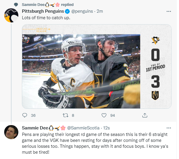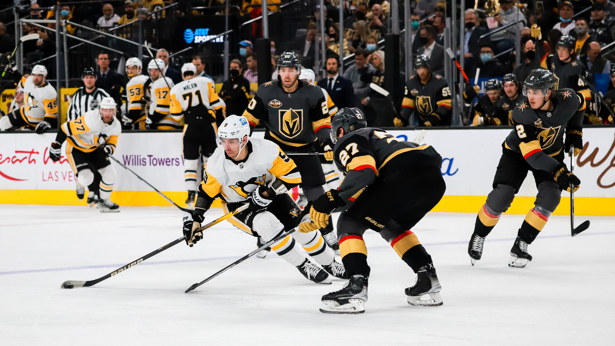 After two periods, it was Vegas 3 Pittsburgh 2