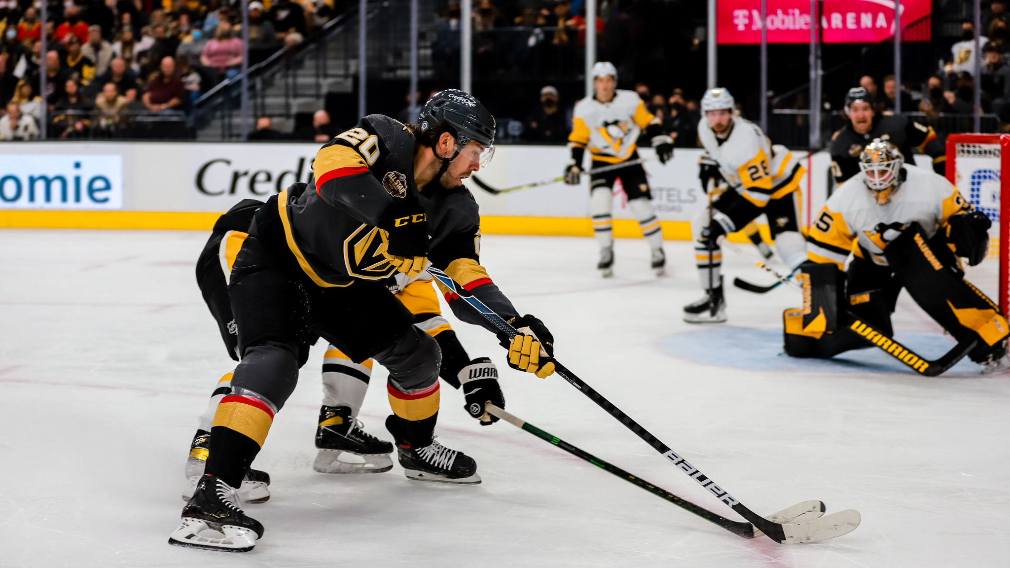 Center Chandler Stephenson, who many fans thought deserved to be in the NHL All-Star game, opened the scoring by going five hole with a goal against Pens’ All-Star goalie Tristan Jarry. It was Stevie’s 11th.