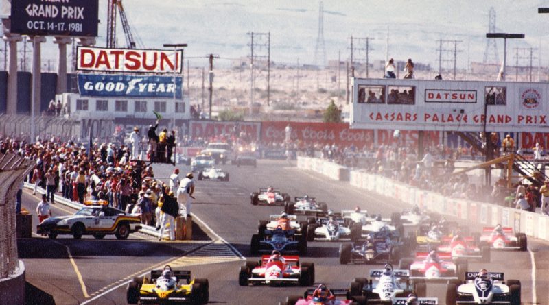 The 1981 Caesars Palace Grand Prix launched screaming F1 toward the Las Vegas Strip at nearly 150mph. A proposed return of F1 to Las Vegas in 2023 would race down the Strip, likely at night. (Bill Weinberger Collection)