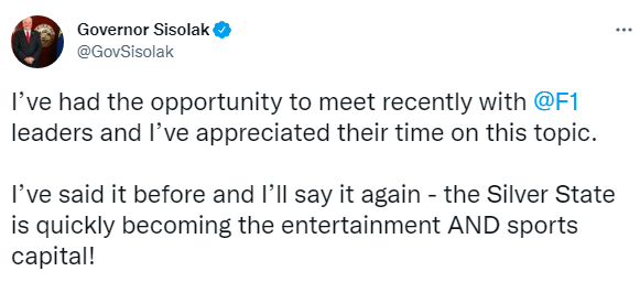 But things have changed. The reported negotiations between the Las Vegas Convention and Visitors Authority and F1 appear to be gaining meaningful traction.