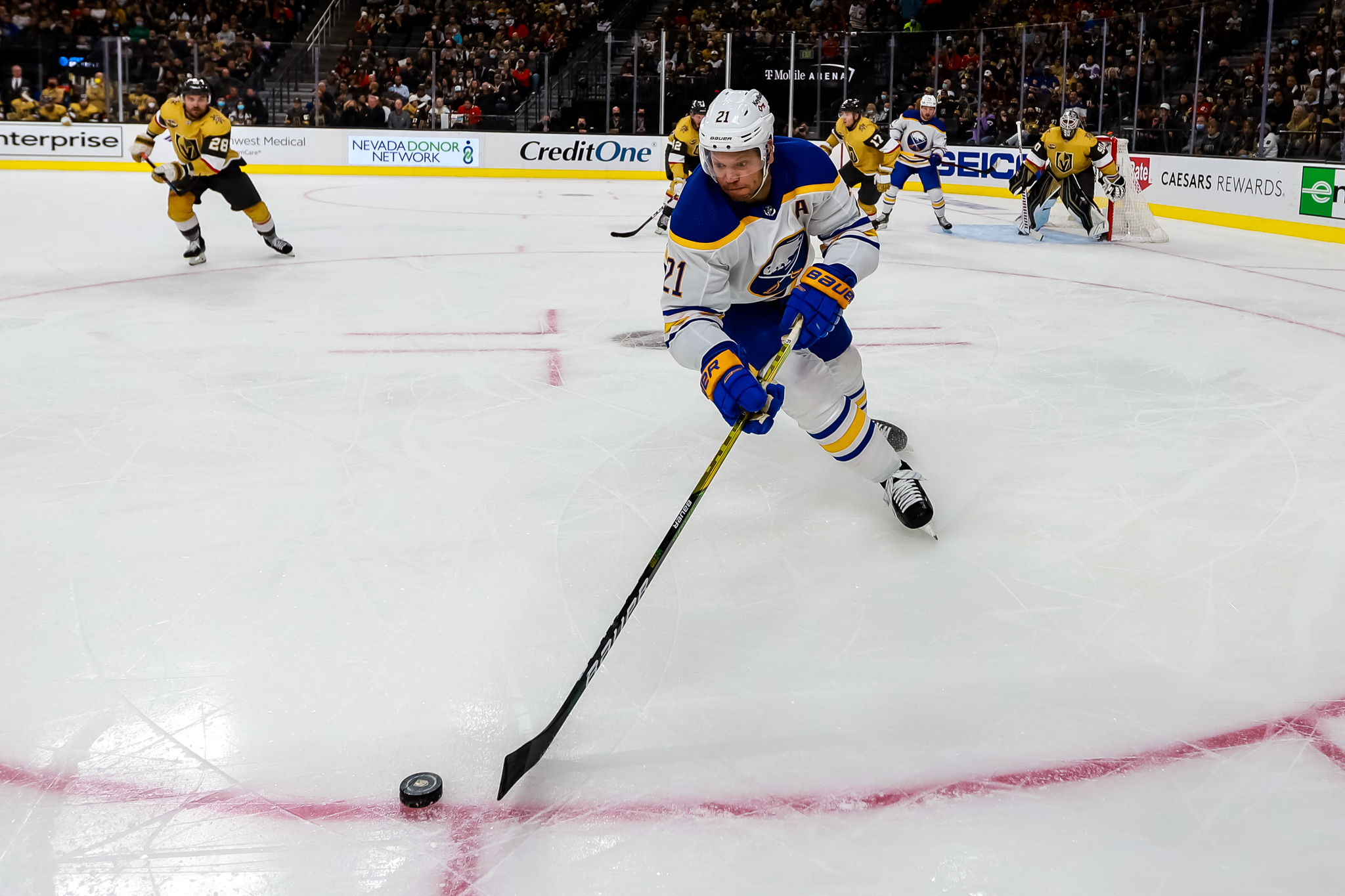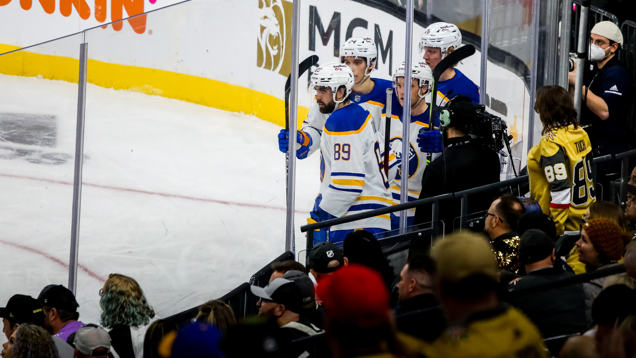 After the Knights gave away the puck in the offensive end, the Sabres responded with a goal by Tuch, who beat VGK goalie Robin Lehner with four minutes left in the second period.