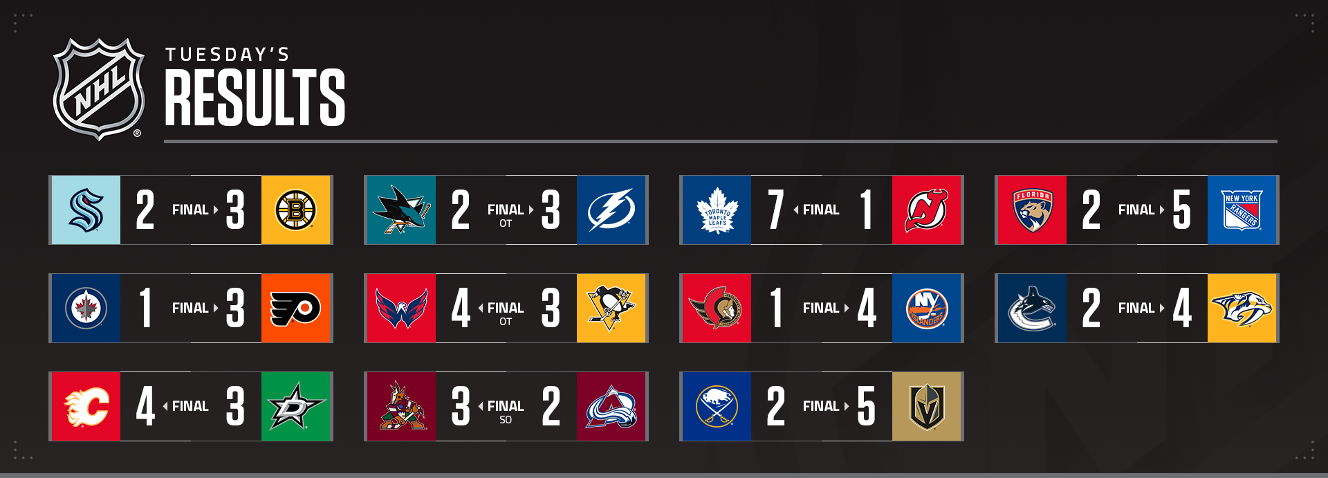 After the first period, it was Vegas 2 Buffalo 0.