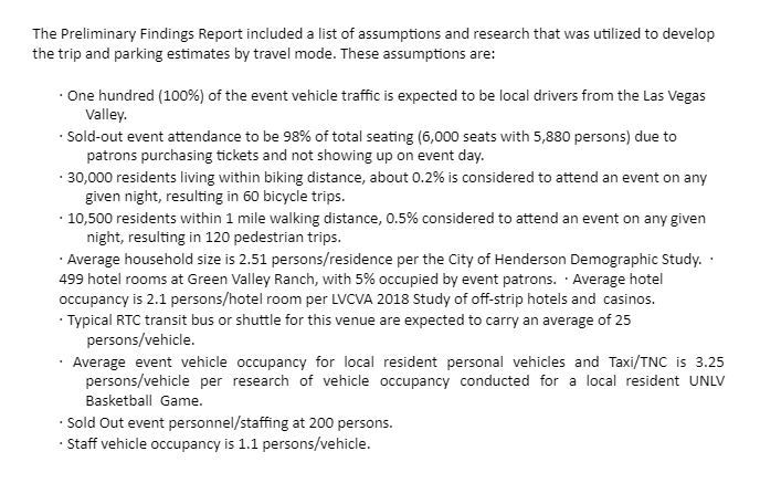 “The City of Henderson has on-going discussions with area property and business owners, including The District at Green Valley and the Green Valley Resort and Casino to coordinate off-site parking agreements and minimize impact to area business while allowing opportunities for event attendees to visit these businesses,” the traffic report said.