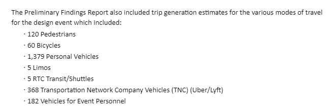 But here’s the catch: the traffic report anticipates that 20 percent of the vehicles for each event will be parked off-site — which comes out to 276 cars.