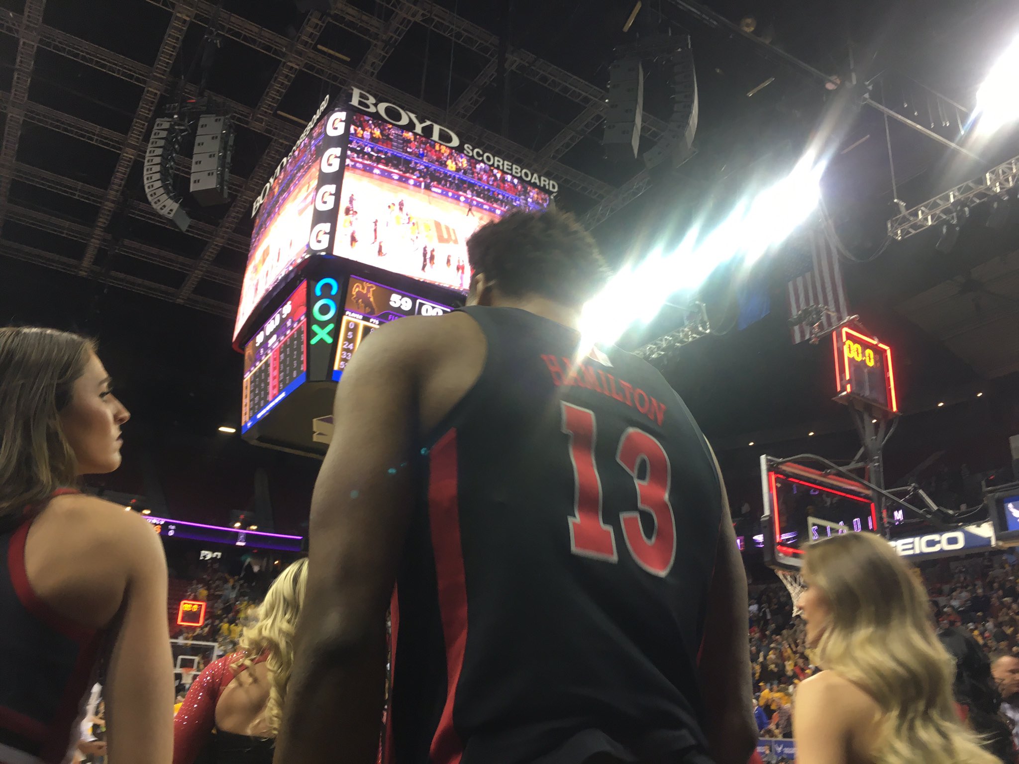 Hamilton missed a potential game-tying three-point shot at the buzzer and the men’s season ended with a record of 18-14. LVSportsBiz.com was there to photograph a disappointed Hamilton.