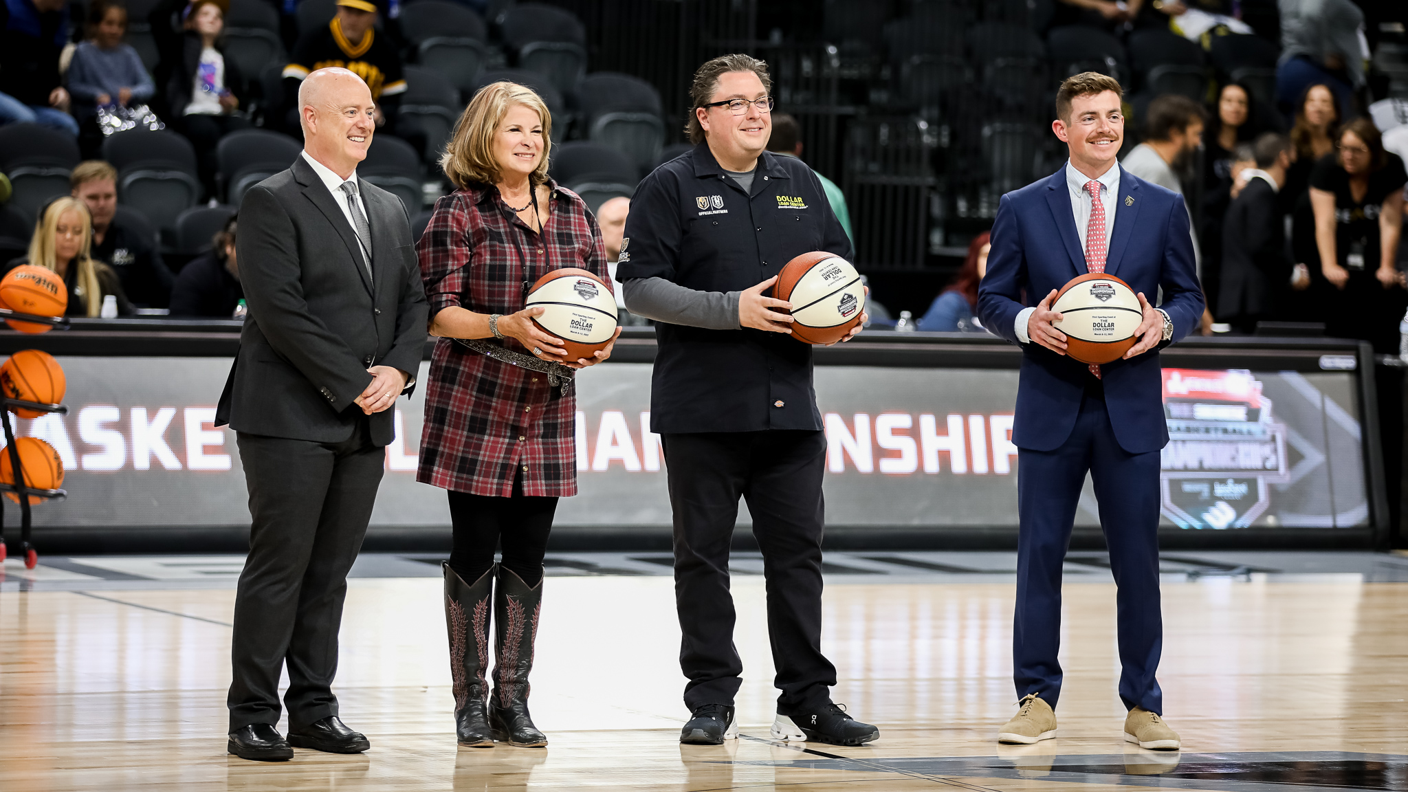 And Henderson Mayor Debra March (Madness) and Dollar Loan Center short-term loan business man Chuck Brennan received a basketball during pregame activities.
