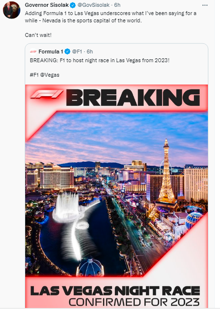 Sightings of Hill and other Las Vegas officials at the F1 race in Austin, TX in August 2021 fed an insatiable international rumor mill.