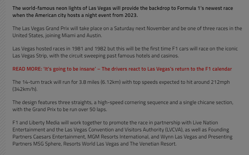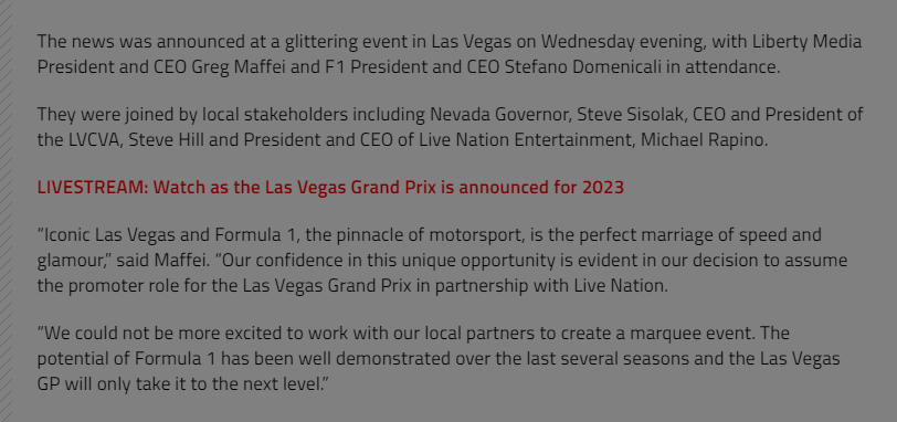 It was hardly a secret. Media, pundits, and F1 fandom around the world speculated for months about an imminent F1 race that would include the Las Vegas Strip.