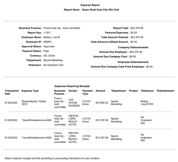 Here’s another typical LVCVA expense report for the Super Bowl 56 trip in Los Angeles submitted by Motley.