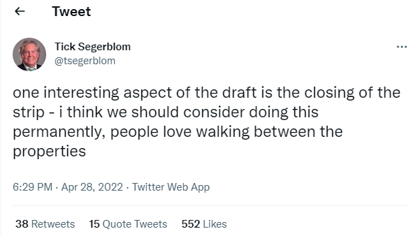 On Thursday, Segerblom tweeted about the concept of closing the Strip for people to walk it.