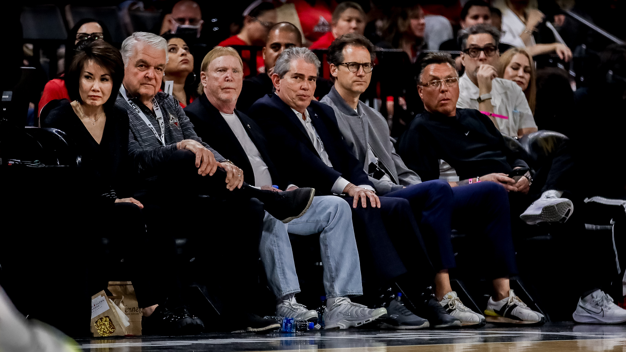 He sat courtside next to Raiders/Aces owner Mark Davis Sunday evening, cheering the Las Vegas Aces to a win over the Seattle Storm. In fact, super sports fan Gov. Steve Sisolak was punching the air above him in celebration at the end of game when the Davis-owned Aces polished off Seattle, 85-74.
