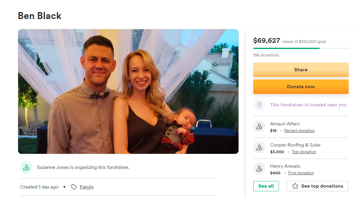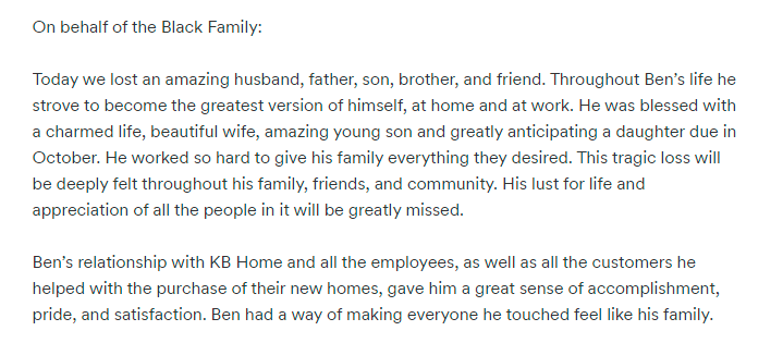Authorities identified the bicyclist as 31-year-old Ben Black. He had a pregnant wife and a young son. The gofundme.com page.