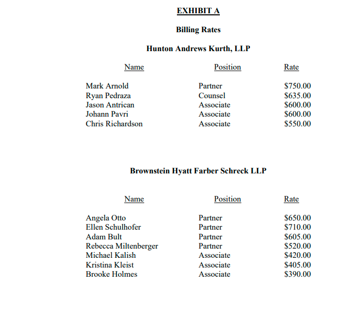 Here are the folks getting paid for the legal work.