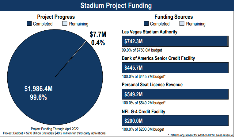 Where is the money coming from to pay for the construction of the Raiders’ $2 billion stadium project? (Officially speaking, the stadium authority “owns” the stadium. But the Raiders run the place, hiring ASM Global to manage the venue. As you can see, the Las Vegas Stadium Authority — that’s you, the public of Southern Nevada — is the number one funding source at $750 million. It should be noted that the Raiders used a stunning $549.2 million in personal seat licenses from the people who bought Raiders season tickets to help pay their share.